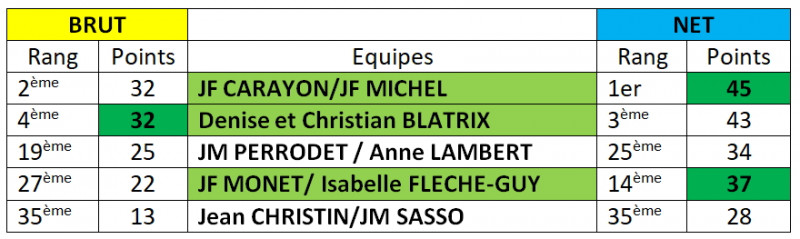 Lors de l'annonce des résultats hier au Gouverneur une erreur s'est glissée dans l'attribution des points stableford à chaque club ... et finalement, une fois l'erreur rectifiée, c'est bien la Sorelle qui termine à la première place du jour !