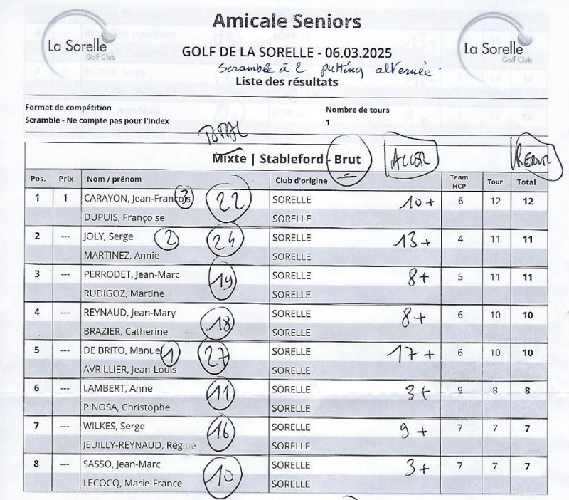 Malgré cela, vous avez conservé votre bonne humeur, réalisé quelques beaux birdies et assisté les nouveaux seniors présents, comme Christophe PINOSA qui faisait son 1er 18trous et sa 1ère "compétition amicale".