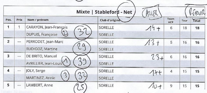 avec 42 équipes dont 4 équipes pour LA SORELLE, en scramble à 2.