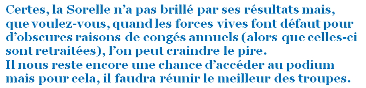 Ce manque de "Sorelliens" a permis à SALVAGNY,