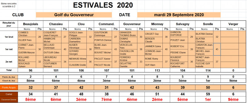 Lors de l'annonce des résultats hier au Gouverneur une erreur s'est glissée dans l'attribution des points stableford à chaque club ... et finalement, une fois l'erreur rectifiée, c'est bien la Sorelle qui termine à la première place du jour !
