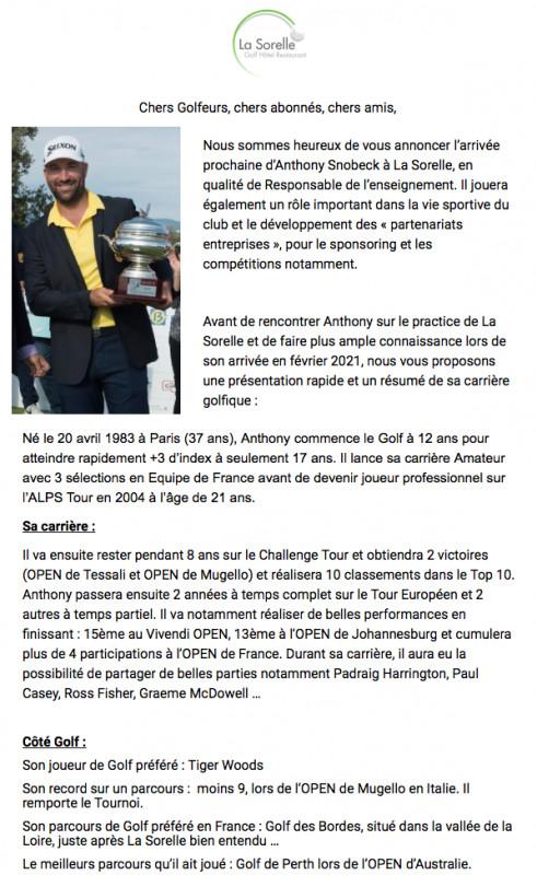En inscrivant votre e-mail, vous recevrez gratuitement les bulletins d'information de Amicale Seniors du Golf de La Sorelle