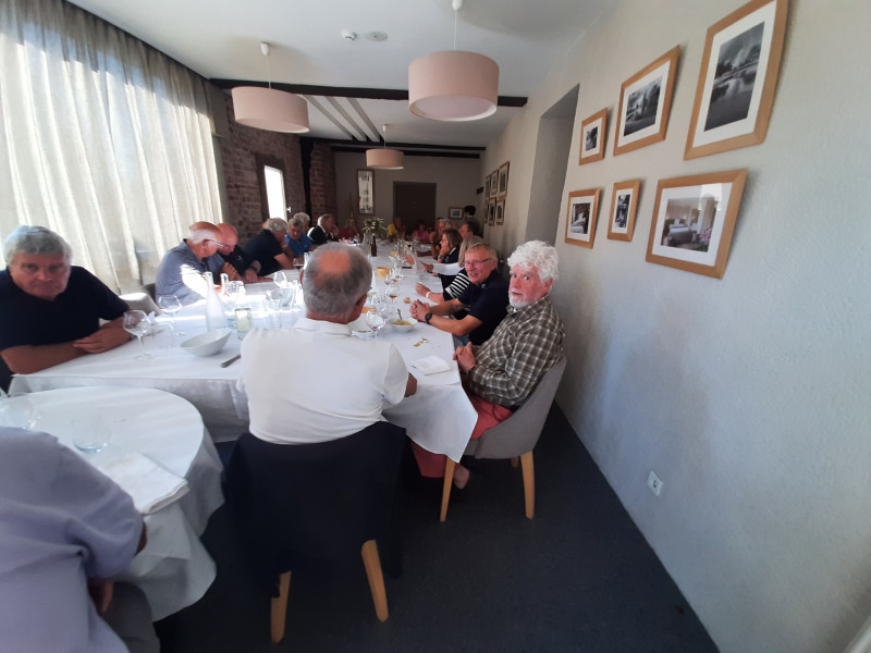 EXTRAORDINAIRE, la participation. Quel nombre ? peut être 28 ?, de nouveaux arrivants ou plus exactement retour d'anciens adeptes. Au restaurant, la table n'était pas assez grande, il a fallu rajouter des couverts.